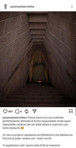 Dal 2019 gestiamo la comunicazione online del Pozzo Santa Cristina in modo completo, dai social alla creazione di contenuti e advertising. Produciamo contenuti professionali per esaltare la bellezza del sito, e contenuti educativi insieme alle guide per raccontarne la storia.